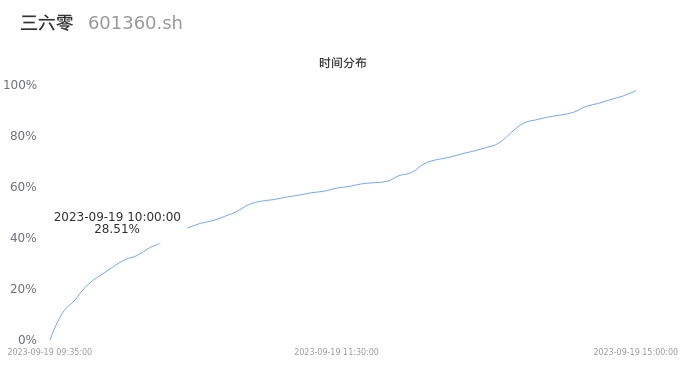 601360三六零2023年09月19日成交83.00万手,成交金额8.20亿元,相较昨日放量15.37万手,换手率1.16%,成交清淡。