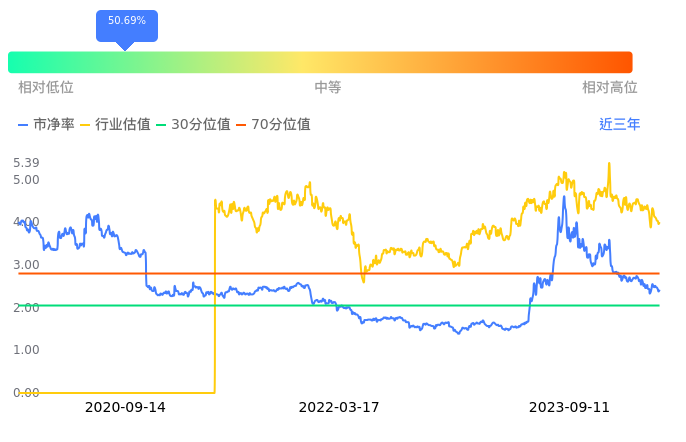 三六零当前市净率PB为2.42,在所属的软件开发中,市净率PB排19,前五名分别为中电兴发市净率1.07、天融信市净率1.18、理工能科市净率1.21、天源迪科市净率1.87、高新兴市净率2.13。三六零当前市净率PB为2.42,超过近3年50.69%的历史数据。