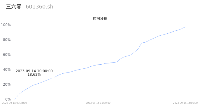 601360三六零2023年09月14日成交61.20万手,成交金额6.29亿元,相较昨日缩量40.19万手,换手率0.86%,成交清淡。