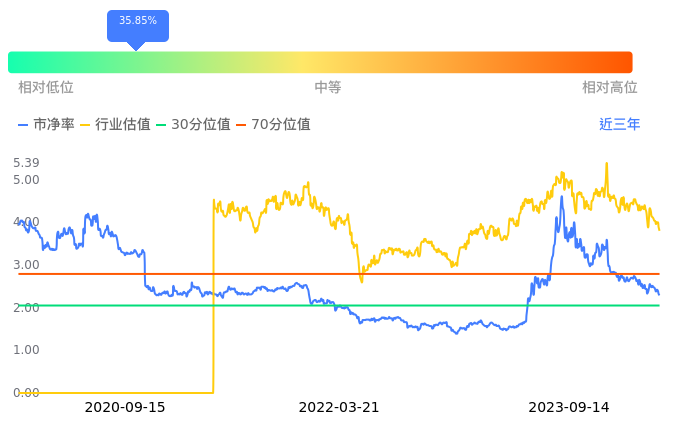 三六零当前市净率PB为2.29,在所属的软件开发中,市净率PB排18,前五名分别为中电兴发市净率1.03、天融信市净率1.15、理工能科市净率1.19、天源迪科市净率1.70、恒华科技市净率2.04。三六零当前市净率PB为2.29,超过近3年35.85%的历史数据。