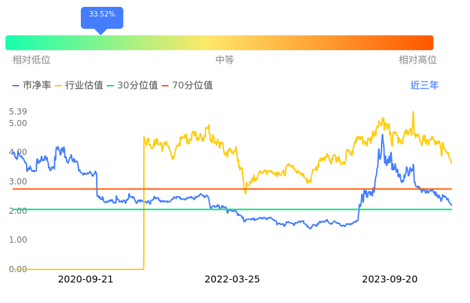 三六零当前市净率PB为2.18,在所属的软件开发中,市净率PB排16,前五名分别为中电兴发市净率1.02、天融信市净率1.11、理工能科市净率1.20、天源迪科市净率1.60、高新兴市净率1.93。三六零当前市净率PB为2.18,超过近3年33.52%的历史数据。