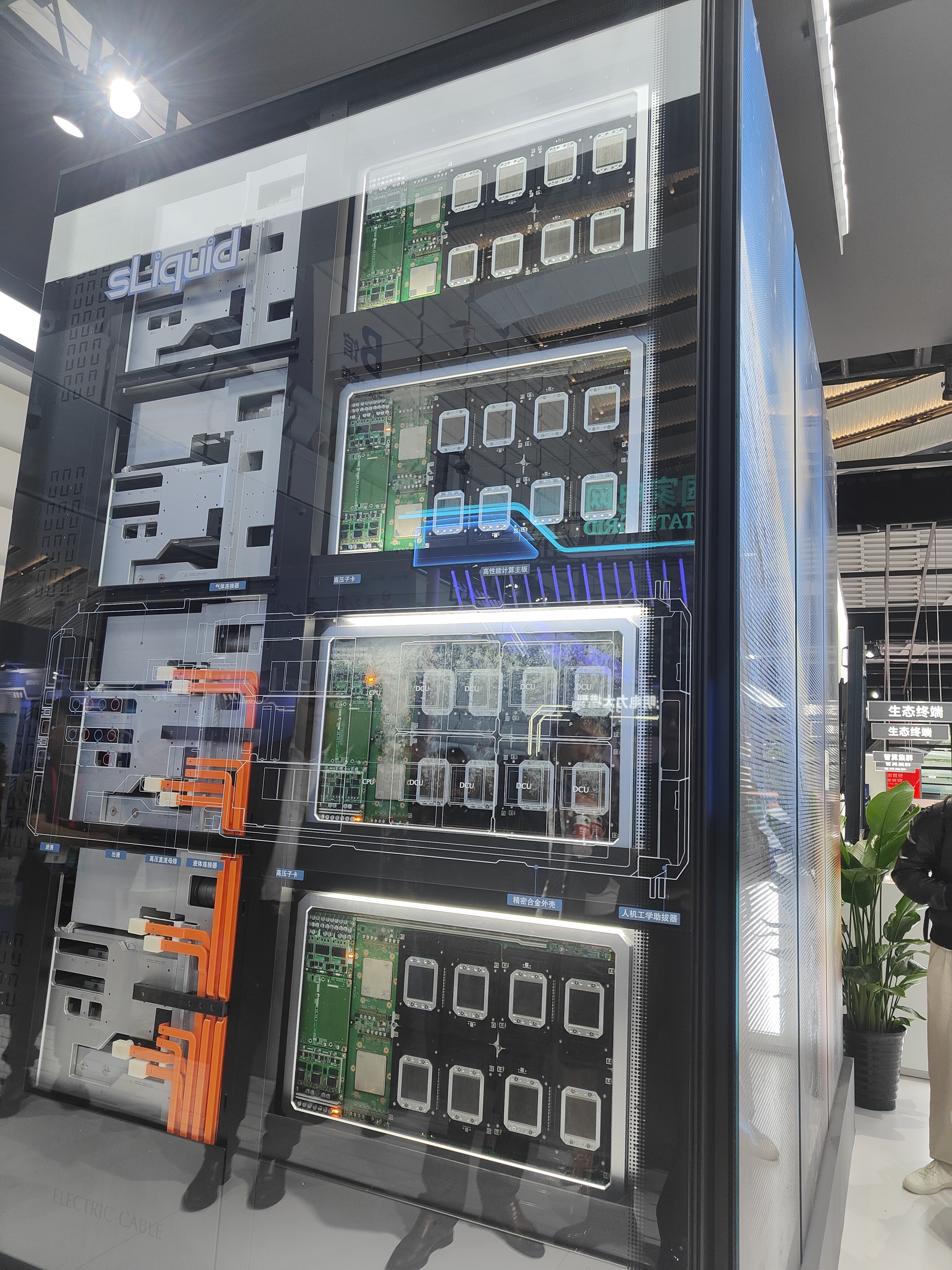 随着AI应用扩大,算力基础设施如何支撑成为焦点。超节点在年内的科技行业盛会上频繁亮相。7月的世界人工智能大会上,华为展出一整面昇腾384超节点的“墙”,壁仞科技、新华三等入局超节点。中科曙光则在乌镇峰会上发布了单机柜级640卡超节点,在展馆中,记者看到一台黑色机器内部咕噜咕噜冒着水泡,吸引观众驻足,这是机柜内的浸没相变液冷系统。