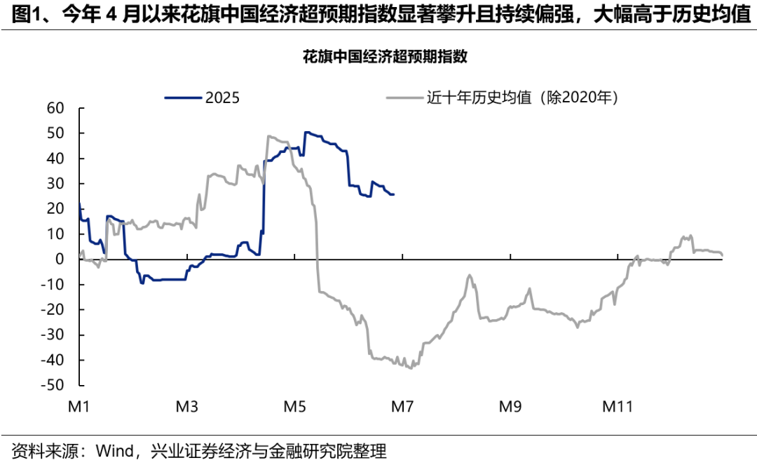 兴业证券发布研报称,6月中旬,在中美伦敦谈判等外部催化落幕、同时中东地缘扰动再起的背景下,市场上一直不乏对于大盘将要调整的担忧。然而,在经历短暂休整后,本周上证综指再创年内新高,并已接近去年10月8日创下的高点,行情的强度和持续性可以说超过了不少投资者的预期。本轮市场的新高,市场倾向于从短期事件催化的角度“找原因”,其实更应该从中长期视角把握底层逻辑。随着宏观政策托底、产业亮点涌现、增量资金涌入,今年有望持续是风险偏好抬升、多头思维占优的一年。