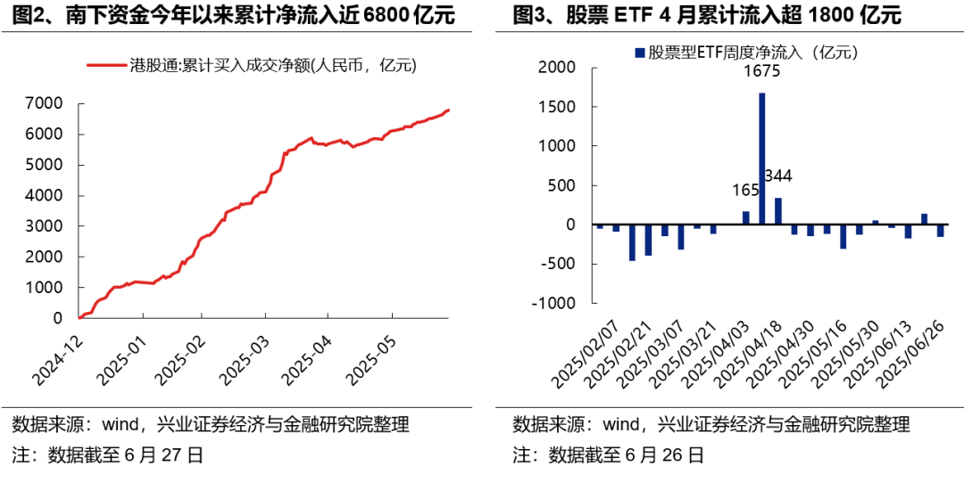 首先,基本面和政策为市场风险偏好托底。关税冲击后,国内经济呈现超预期韧性,花旗中国经济超预期指数显著攀升并持续高位运行,大幅高于历史均值水平。并且,近期涉及地产、消费、资本市场等各领域政策仍在积极发力,持续提振市场风险偏好。