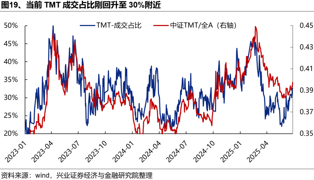 成交占比看,当前TMT成交占比刚回升至30%附近,仍显著低于45%左右的过热区间。市场风险偏好抬升下,具备产业趋势支撑、高弹性的AI板块或将是市场的显著共识,情绪仍有较大抬升空间。