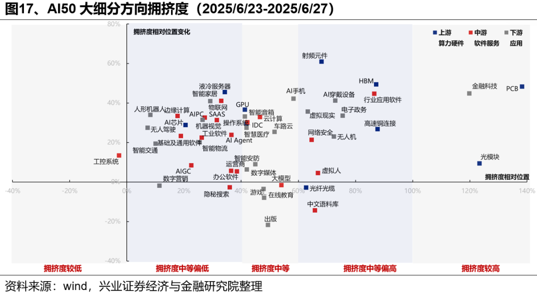拥挤度看,当前多数AI细分方向拥挤度仍在历史中等或偏低水平,板块修复有望进一步向低位扩散;