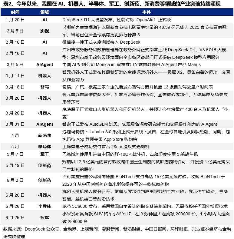 更重要的是,自DeepSeek发布以来,我国持续在AI、机器人、半导体、军工、创新药、新消费等各类领域见证“DeepSeek时刻”,产业亮点不断涌现,不仅带动不少细分板块的赚钱效应明显改善,更成为本轮中国资产重估的清晰主线。