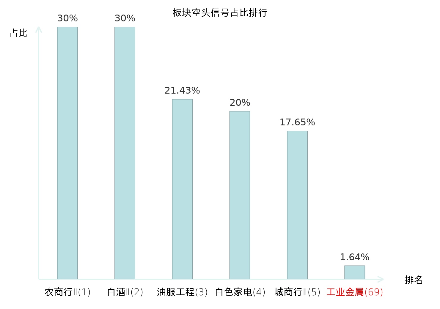 全市场所有行业板块中主力空头信号占比排名中,农商行Ⅱ板块位居第一。消费电子板块名次提升最快,较昨日上升95位。