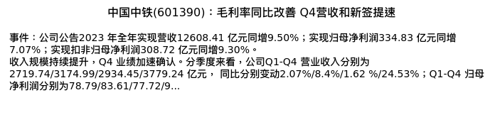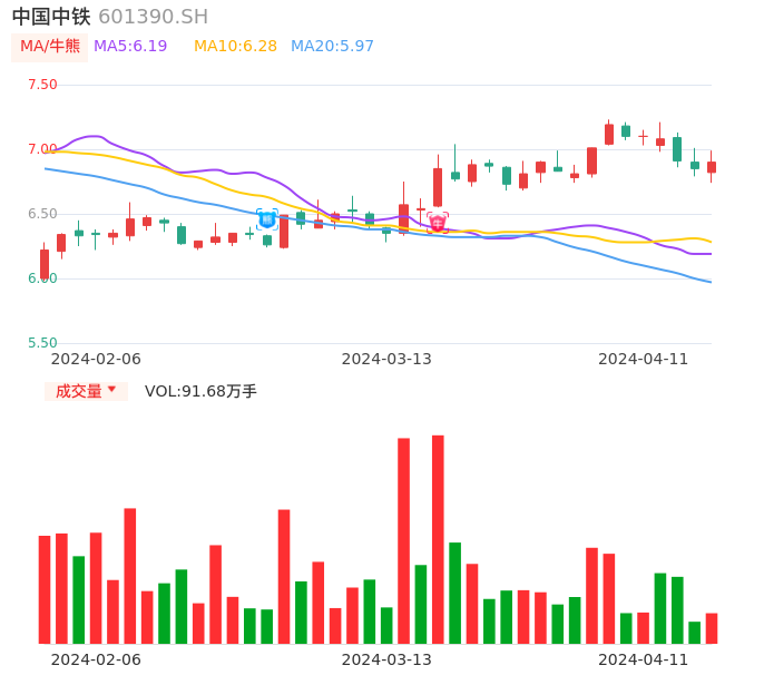 值得注意的是:2024年04月财通证券的毕春晖分析师,首次发布关于中国中铁的研究报告,标题为:中国中铁(601390):毛利率同比改善 Q4营收和新签提速。