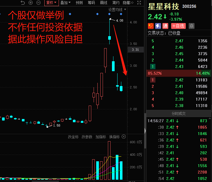 总结下来,题材的退潮期,无非就是市场情绪急转直下,赚钱效应变成亏钱效应,类似天地板或者是超级大面的发生,都会导致行情瞬间崩溃,同时假如市场题材的补涨无法支撑起应有的作用,或者龙头失去主动性之时,也是题材要退潮的时候。