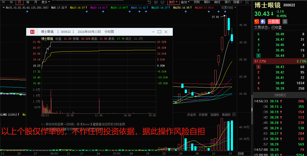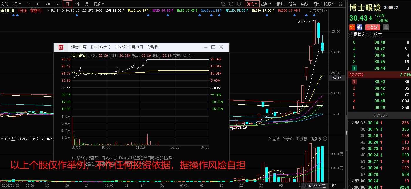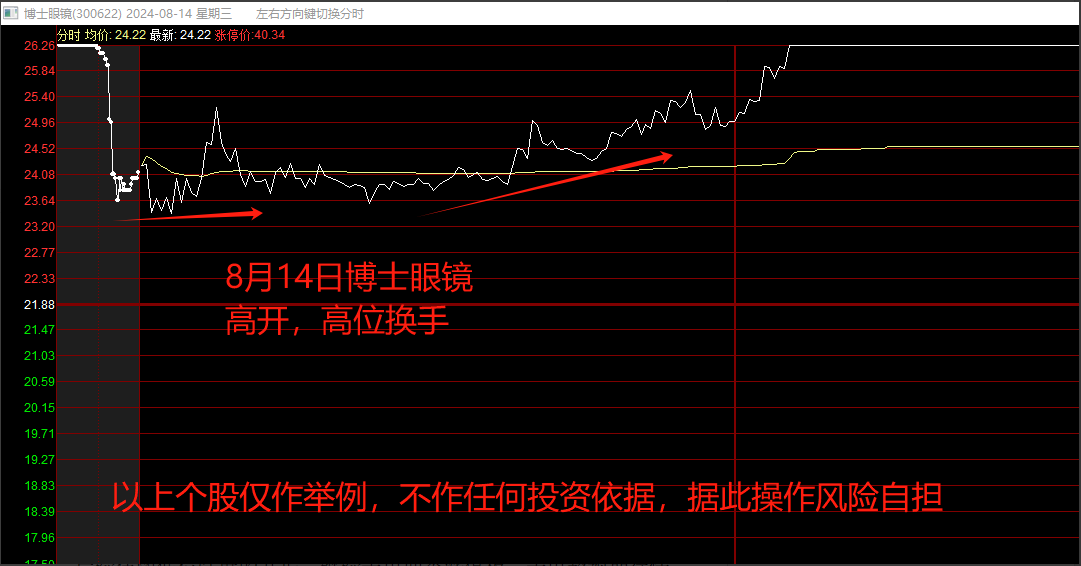 1.至少持续两天后再参与,当前行情下,冲高套人的题材,要么当天冲高回落,要么第二天低于预期,无溢价,亏钱效应都很强。对于当天发酵的题材,可以等到第二天观察承接后再行参与,若第二日良性分歧,甚至可以等第三日的分歧后转一致后再参与,也是前文提到的博士眼镜8月14日是买点,大家可以对照参考游资的买点。