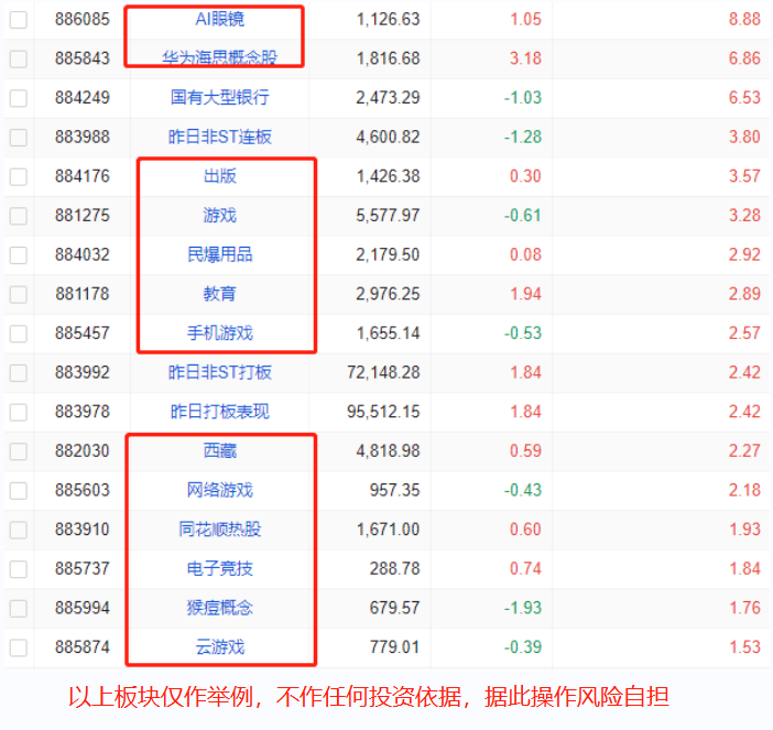 1. 板块核心在低位个股不断涌出的时候,会因情绪共振出现加速行情,才是追高的买点,盲目追高只能被套在高位。