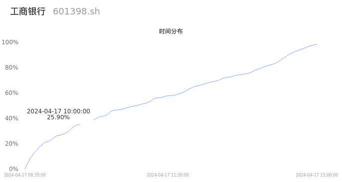 601398工商银行2024年04月17日成交332.20万手,成交金额18.12亿元,相较昨日缩量67.86万手,换手率0.12%,成交清淡。