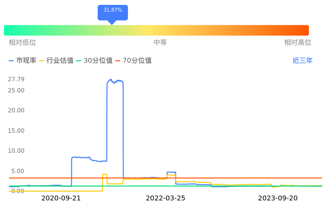 2023年09月20日,工商银行上涨0.21%收于4.69,今日成交金额13.35亿元。下文将从市盈率PETTM、市净率PB、市现率3个角度去分析公司估值情况。