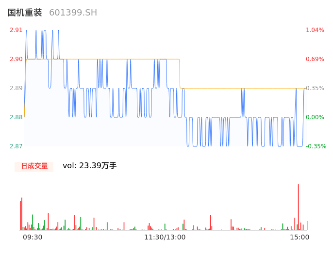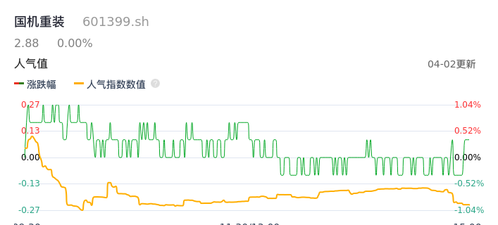 04月02日,国机重装收报2.88,股价涨幅0.00%,成交金额6754.47万元,换手率0.32%。