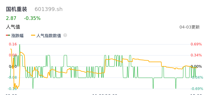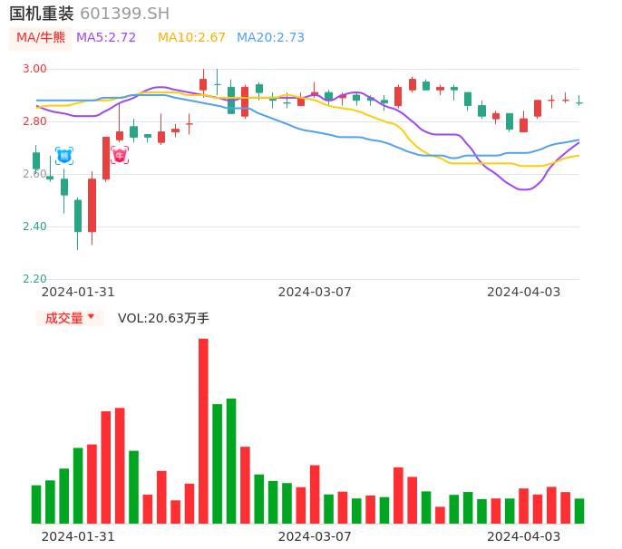 04月03日,国机重装收报2.87,股价涨幅-0.35%,成交金额5938.42万元,换手率0.29%。