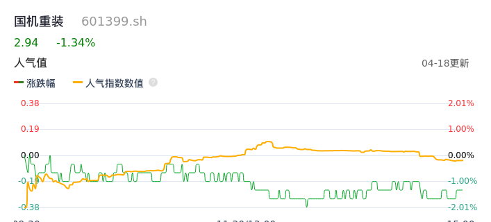 04月18日,国机重装收报2.94,股价涨幅-1.34%,成交金额1.07亿元,换手率0.50%。