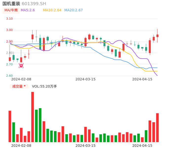 04月15日,国机重装收报2.96,股价涨幅0.68%,成交金额1.63亿元,换手率0.77%。