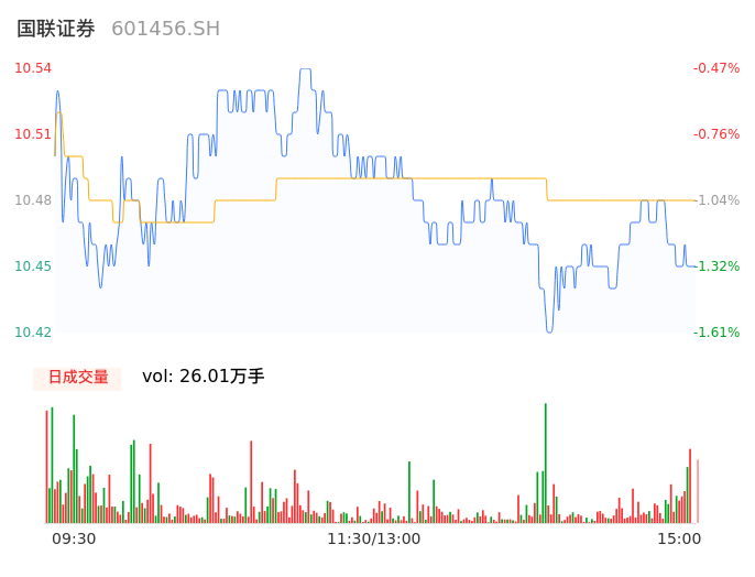 04月25日,国联证券收报10.46,股价涨幅-1.23%,成交金额2.73亿元,换手率1.09%。