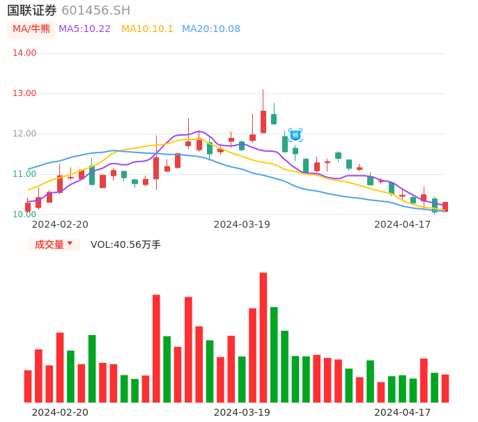 04月17日,国联证券收报10.30,股价涨幅2.39%,成交金额4.13亿元,换手率1.70%。