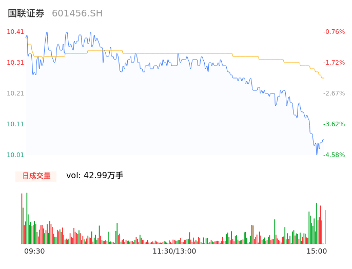 04月16日,国联证券收报10.06,股价涨幅-4.10%,成交金额4.41亿元,换手率1.80%。