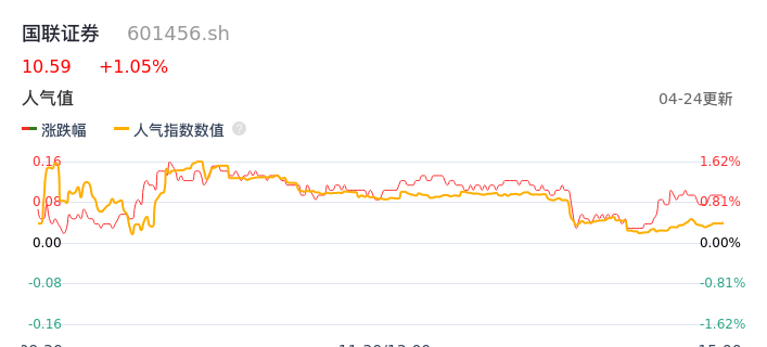 04月24日,国联证券收报10.59,股价涨幅1.05%,成交金额3.56亿元,换手率1.41%。