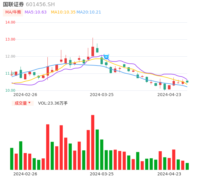 04月23日,国联证券收报10.48,股价涨幅-0.38%,成交金额2.45亿元,换手率0.98%。
