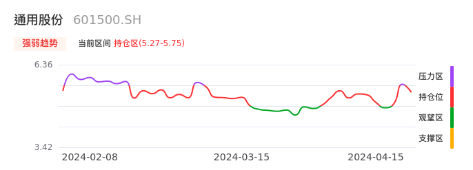我们来看一下该股的九方特色指标强弱趋势的情况:通用股份近日从压力区回到持仓区。股价快速拉升后出现持续调整。后续主要关注下方支撑位:5.27元是否能启稳回升。