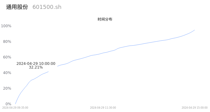 601500通用股份2024年04月29日成交59.19万手,成交金额3.62亿元,相较昨日缩量35.40万手,换手率3.77%,成交清淡。