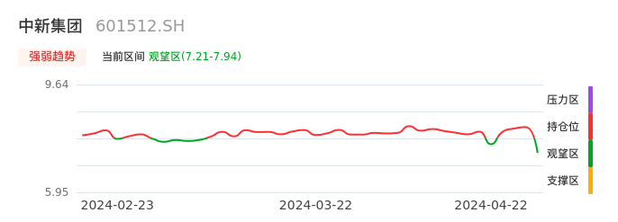 我们来看一下该股的九方特色指标强弱趋势的情况:中新集团近日从持仓区下穿到观望区,股价出现持续性调整行情。短期已经转为空头行情,且下跌动能仍未衰竭。建议继续谨慎观望。