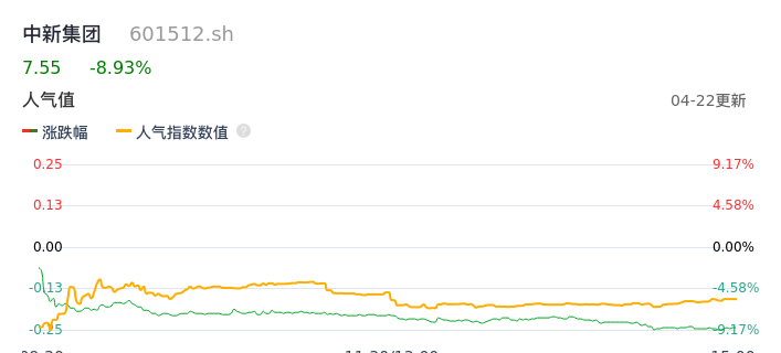 04月22日,中新集团收报7.55,股价涨幅-8.93%,成交金额7718.26万元,换手率0.67%。