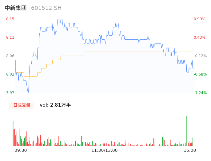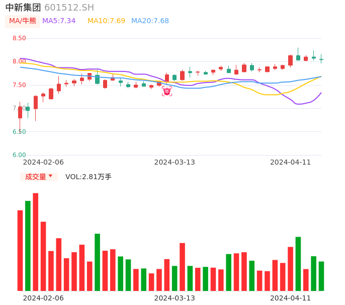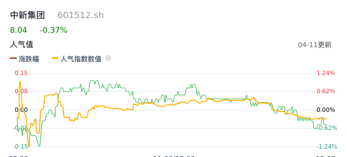 04月11日,中新集团收报8.04,股价涨幅-0.37%,成交金额2267.28万元,换手率0.19%。