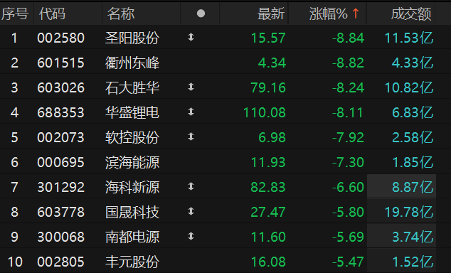 固态电池概念走低 圣阳股份跌超8%