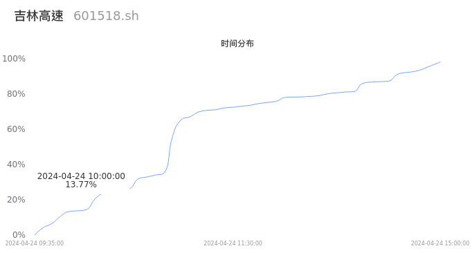 根据成交分布分析,该股票当天放量成交,成交清淡。时间上看,早盘前半小时成交量占据当天总成交量的13.77%;价格上看,成交呈现无峰态。成交分布分析主要研究股票成交的分布特性,不具有预测功能,请知悉。