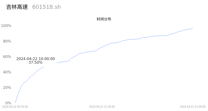 601518吉林高速2024年04月22日成交46.38万手,成交金额1.18亿元,相较昨日缩量29.89万手,换手率2.45%,成交清淡。