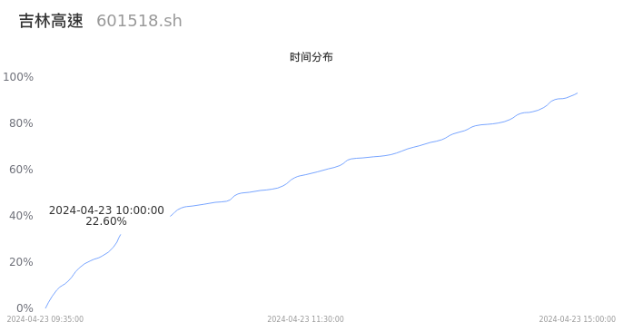 601518吉林高速2024年04月23日成交26.22万手,成交金额6629.40万元,相较昨日缩量20.16万手,换手率1.39%,成交清淡。