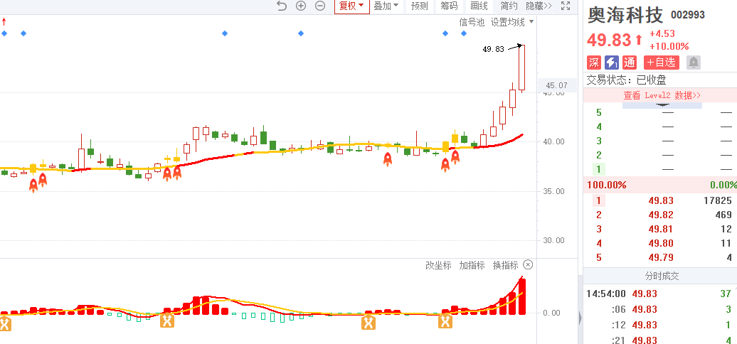 2)20250815-奥海科技-四维操盘-近期出现火箭信号且底部量柱由绿转红