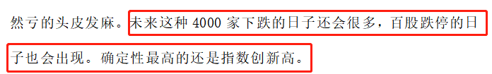 【慢牛行情大阳线后追涨亏钱概率很大,下跌的时候去买才能把握行情。】昨天4千家下跌我告诉大家是机会,今天4千家上涨,我反而觉得下周一、周二不好赚钱了。大家要耐心等绿盘低吸的机会。