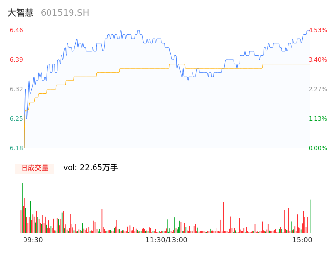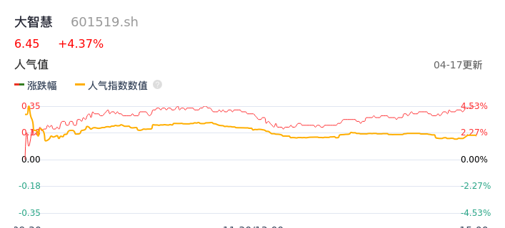 04月17日,大智慧收报6.45,股价涨幅4.37%,成交金额1.45亿元,换手率1.13%。