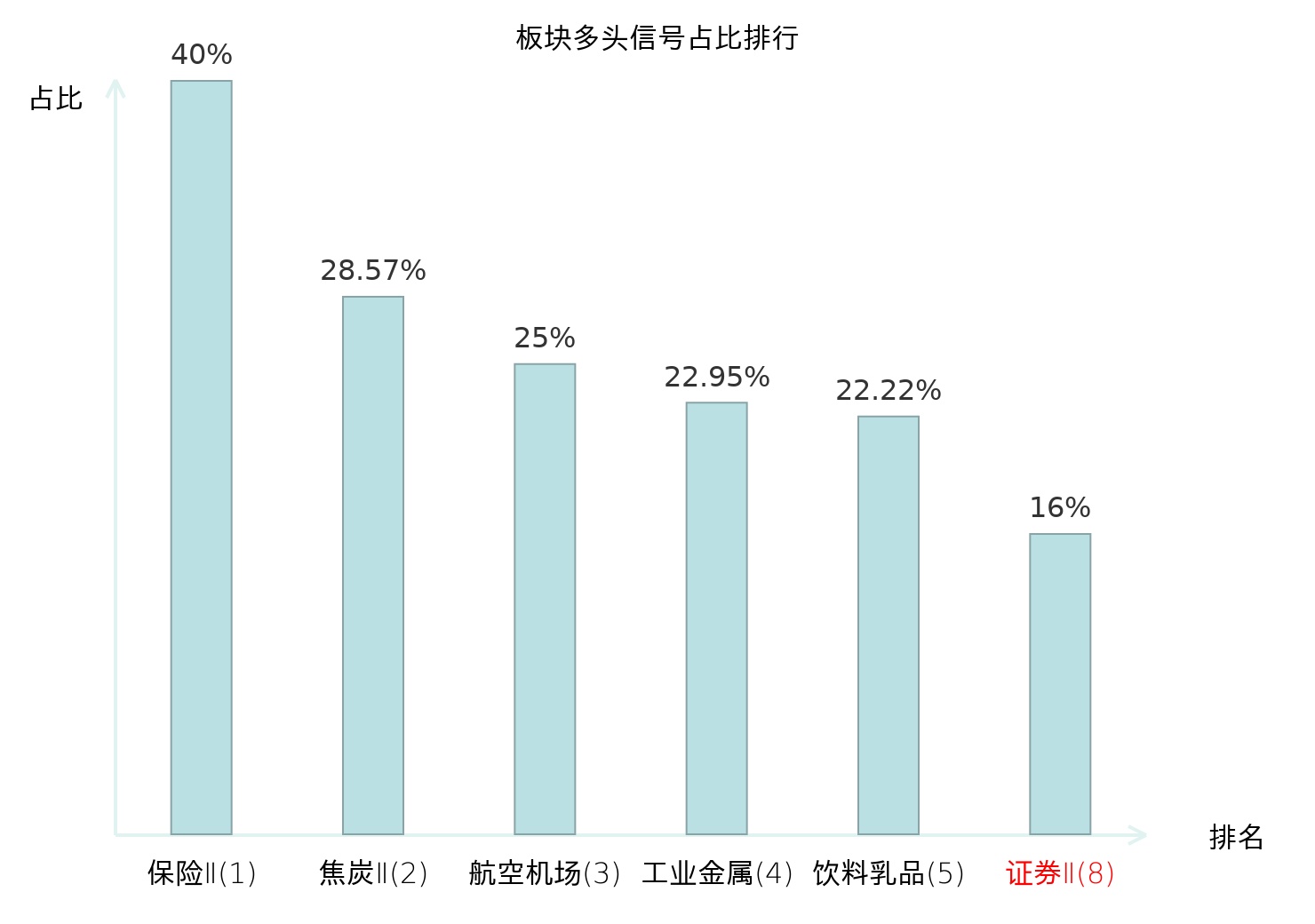 全市场所有行业板块中主力多头信号占比排名中,保险Ⅱ板块位居第一。保险Ⅱ板块名次提升最快,较昨日上升123位。