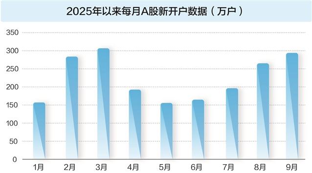 值得一提的是,投资者的入场步伐持续加快。上交所数据显示,2025年9月,A股新增开户数量达293.72万户,较去年同期增长60.73%,环比上升10.83%。这一数字在年内仅次于3月份的307万户,显示投资者信心持续回暖。