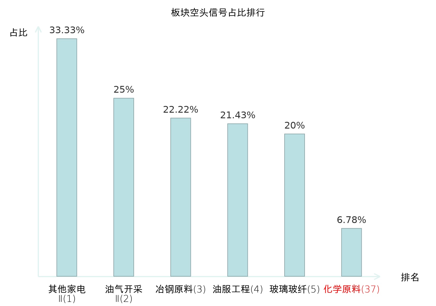 全市场所有行业板块中主力空头信号占比排名中,其他家电Ⅱ板块位居第一。铁路公路板块名次提升最快,较昨日上升113位。