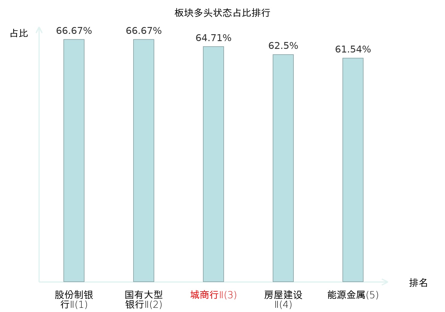 全市场所有行业板块中主力多头状态占比排名中,股份制银行Ⅱ板块位居第一。其他家电Ⅱ板块名次提升最快,较昨日上升102位。