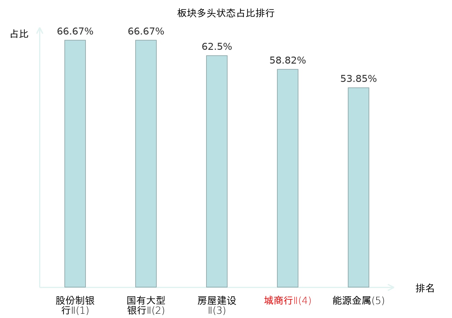 全市场所有行业板块中主力多头状态占比排名中,股份制银行Ⅱ板块位居第一。航空机场板块名次提升最快,较昨日上升68位。