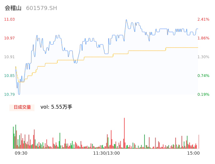 04月29日,会稽山收报11.00,股价涨幅2.14%,成交金额6077.53万元,换手率1.16%。