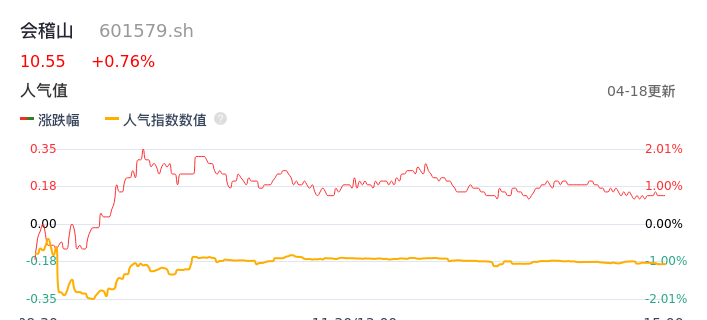 04月18日,会稽山收报10.55,股价涨幅0.76%,成交金额5048.40万元,换手率1.00%。