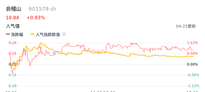 04月25日,会稽山收报10.84,股价涨幅0.93%,成交金额3620.37万元,换手率0.70%。