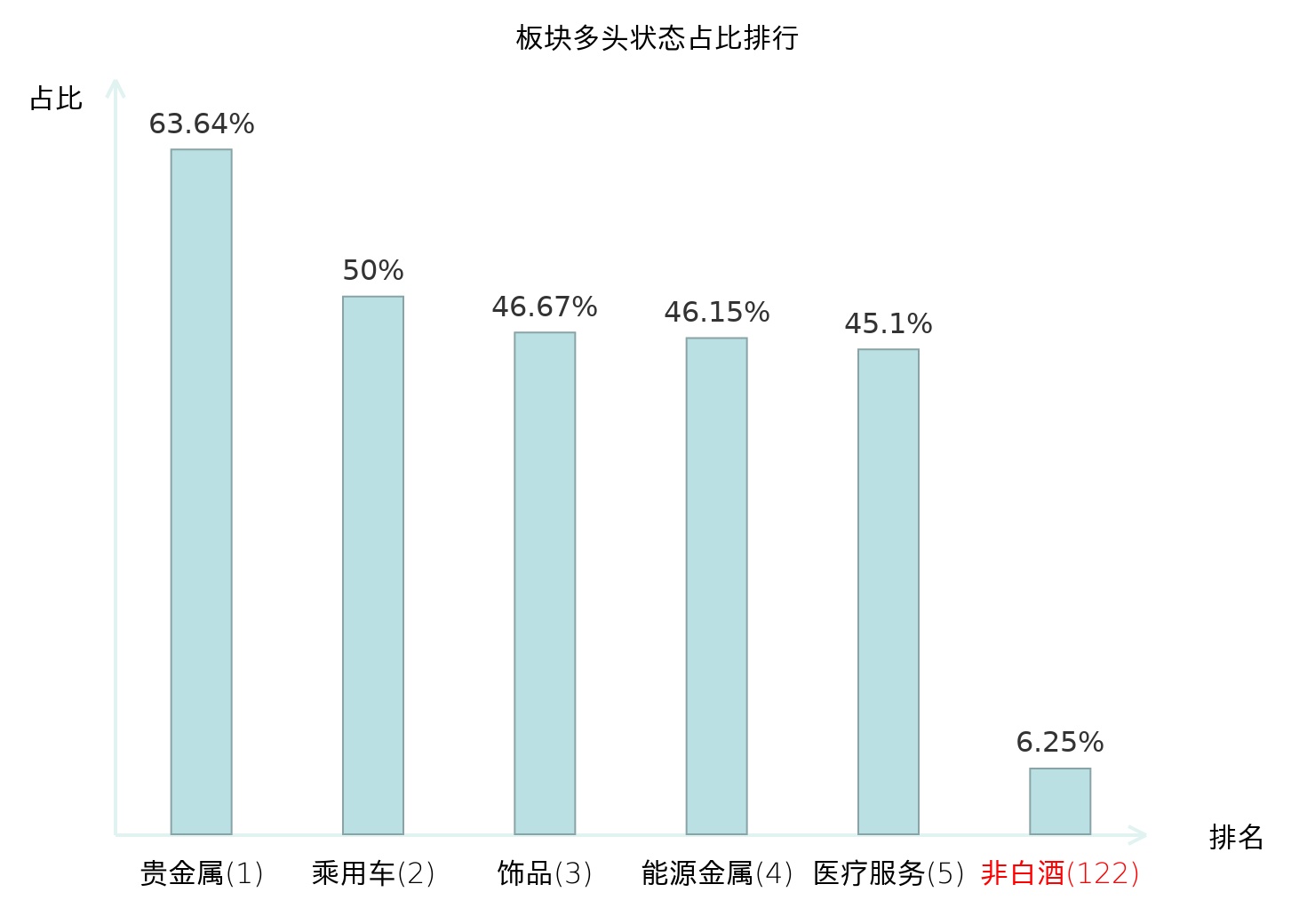 从主力宝信号数据分析,会稽山所属的非白酒板块中共1只股票处于主力多头状态,主力多头状态占比在全行业中排名第122位,较昨日一致。排名越高说明主力对于板块整体看多意愿越强。全市场所有行业板块中主力多头状态占比排名中,贵金属板块位居第一;电机Ⅱ板块名次提升最快,较昨日上升61位。这些变动揭示了不同行业间主力资金偏好的变化,有助于投资者理解当前市场的动态和趋势。