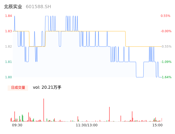 04月08日,北辰实业收报1.80,股价涨幅-1.64%,成交金额3679.03万元,换手率0.76%。
