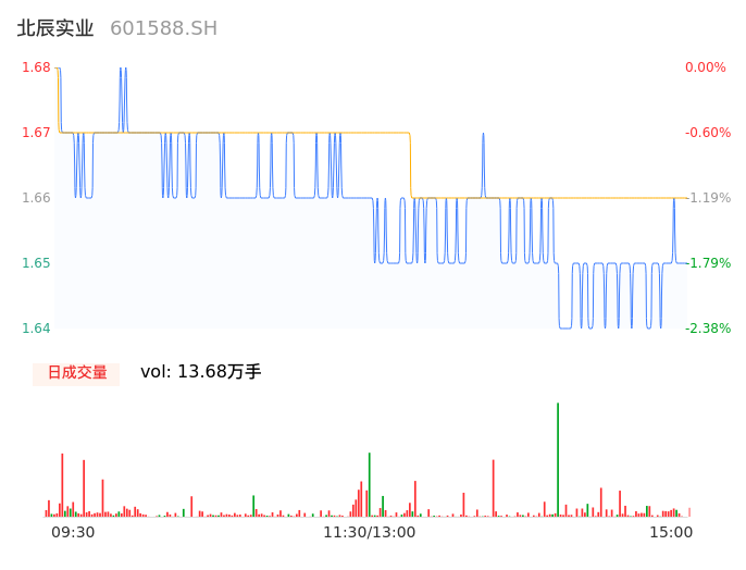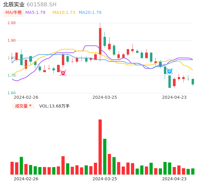 04月23日,北辰实业收报1.65,股价涨幅-1.79%,成交金额2268.83万元,换手率0.51%。